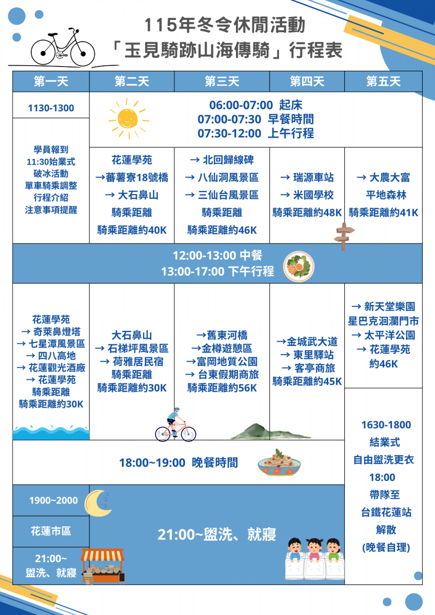【住宿:花蓮學苑、荷雅居民宿、台東假期商旅、客亭商旅4-5人房,民宿住宿(4-8人)如有調整住宿換同等級】