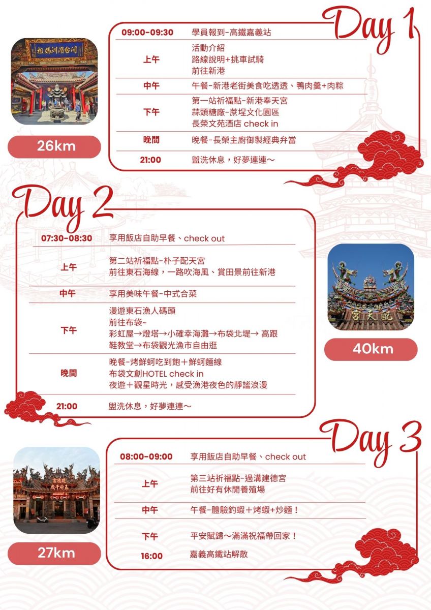 A special “Three-Temple Blessing Challenge” adds a meaningful touch—collect stamps from Xingang Fengtian Temple, Puzi Peitian Temple, and Guogou Jiande Temple to earn an exclusive souvenir certificate, marking your journey with both memory and blessing.