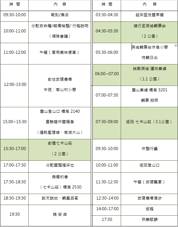 活動地點:臺中市 武陵農場、雪霸國家公園、七卡山莊、雪山東峰