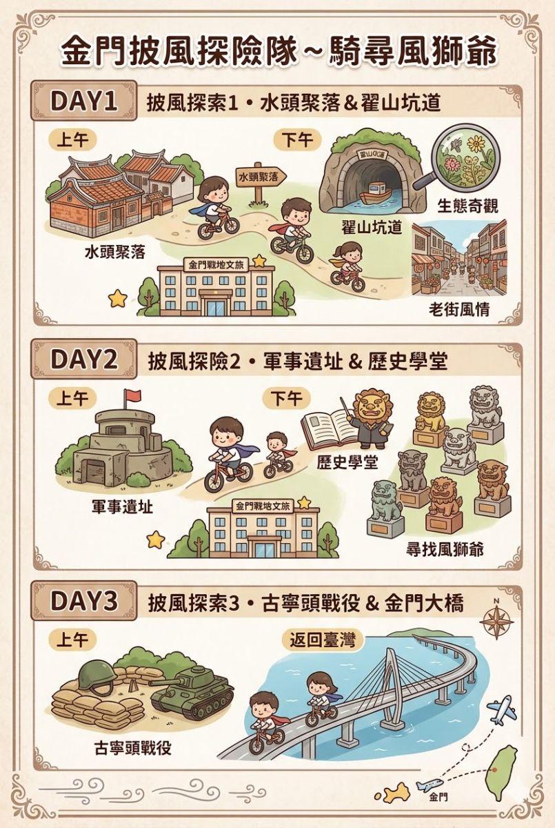 風獅爺護航,騎行金門,讓孩子們在冒險中了解金門的傳統與歷史。